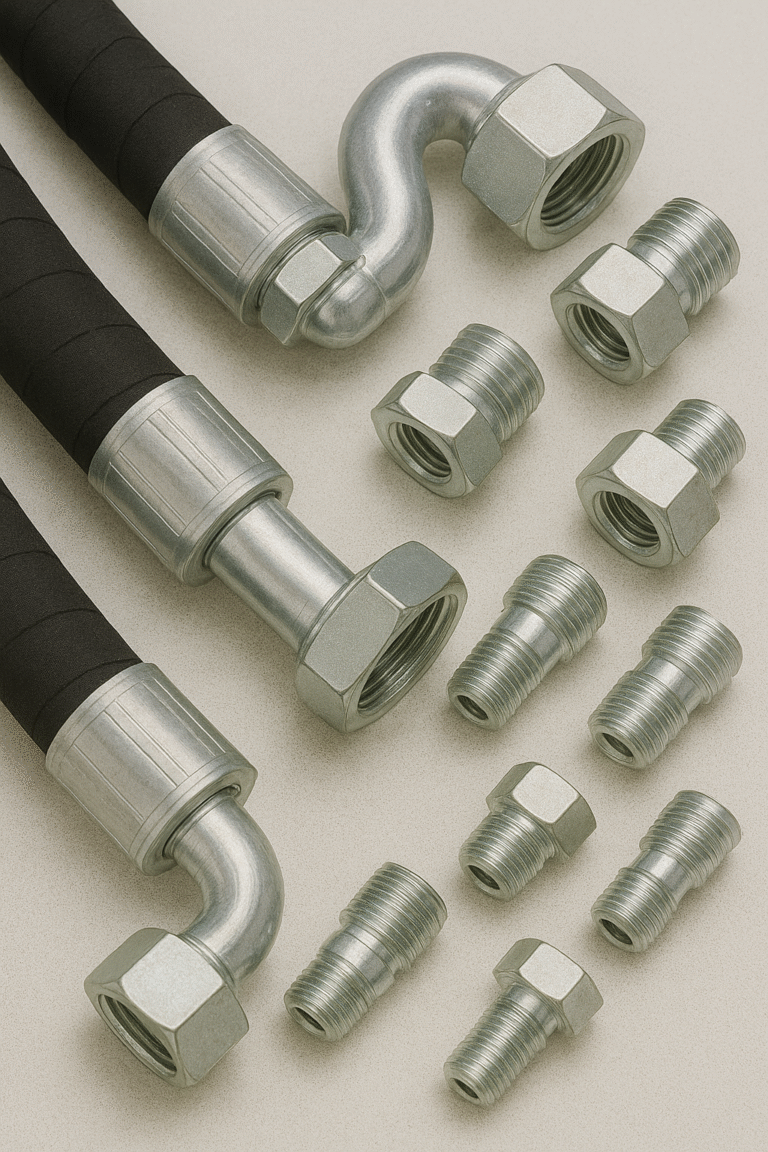Durable fittings designed for secure, leak-proof connections in high-pressure hydraulic systems.